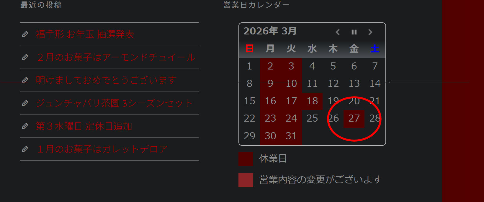 • 3月27日 臨時休業