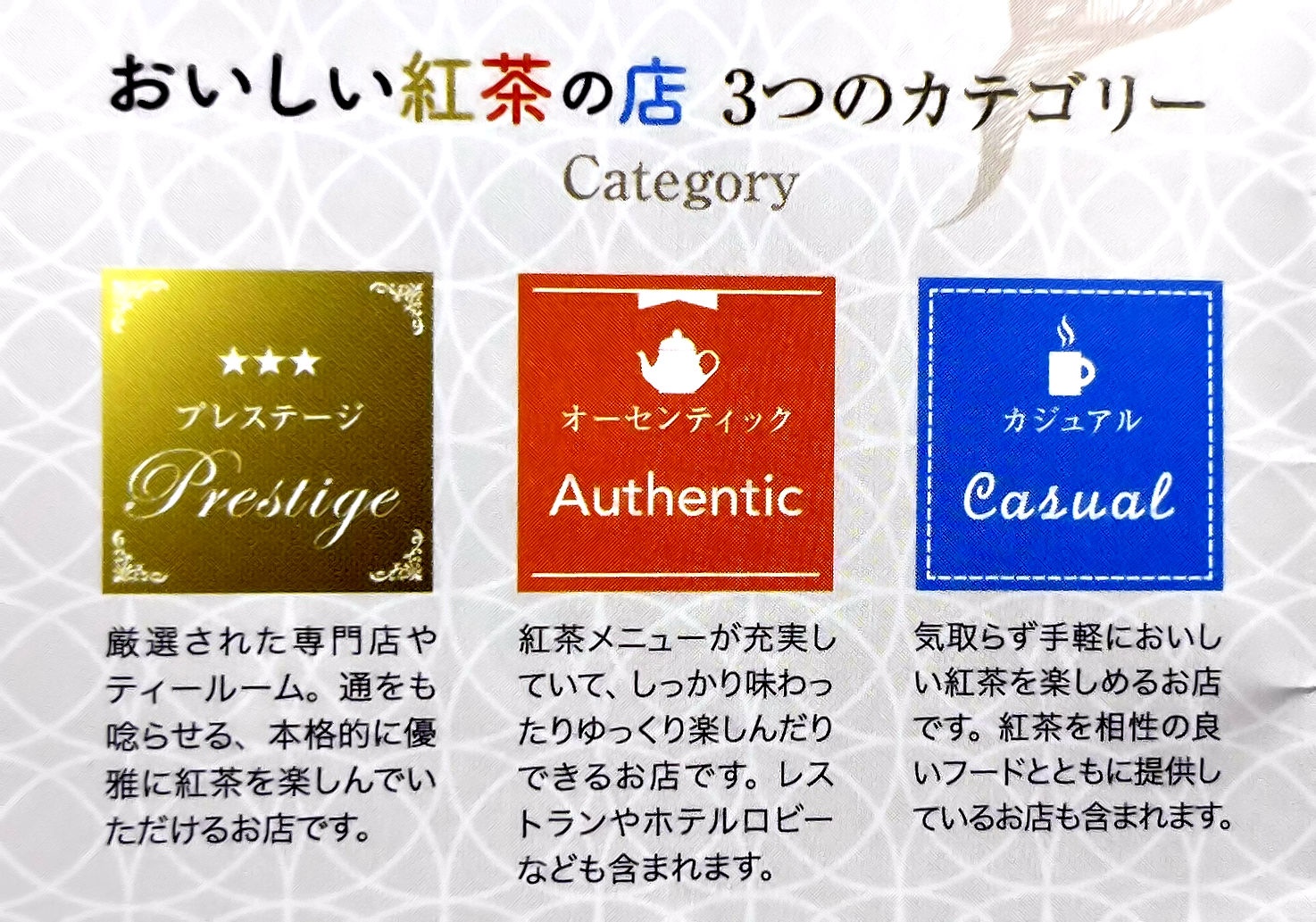 紅茶協会のホームページは、まだこのカテゴリー分けまで更新されていませんが、新規に認定されるお店は、リストやホームページで公開されています。
